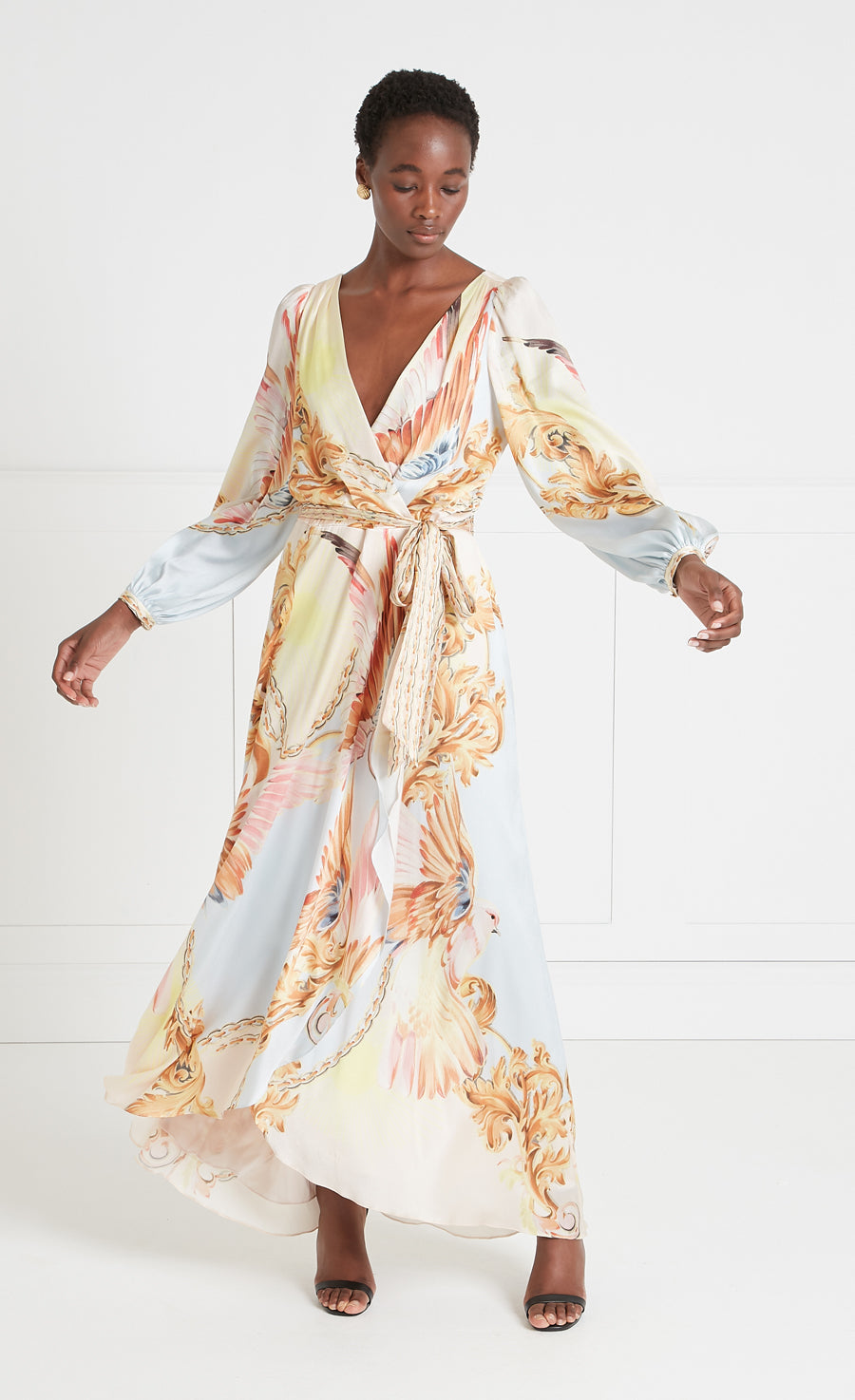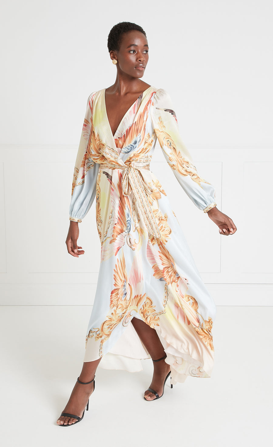 Impeccably cut and truly timeless, the Akira wrap dress is understatedly elegant ¡ª the classic silhouette elevated with relaxed puff sleeves and bow waist tie, cascading into a full, curved hem skirt.