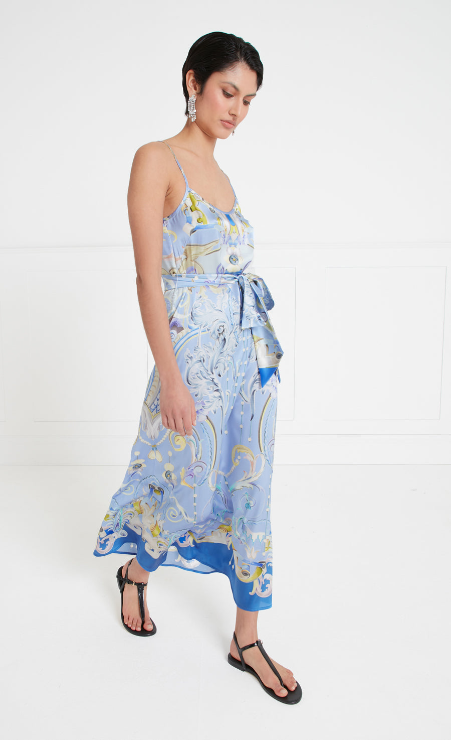 An elevated take on the timeless wardrobe staple, the Carline print slip dress can be worn alone for a minimalist summer look, finished with the silky waist tie, or layered with the Carline print coat as a classical two-piece with an offbeat twist.