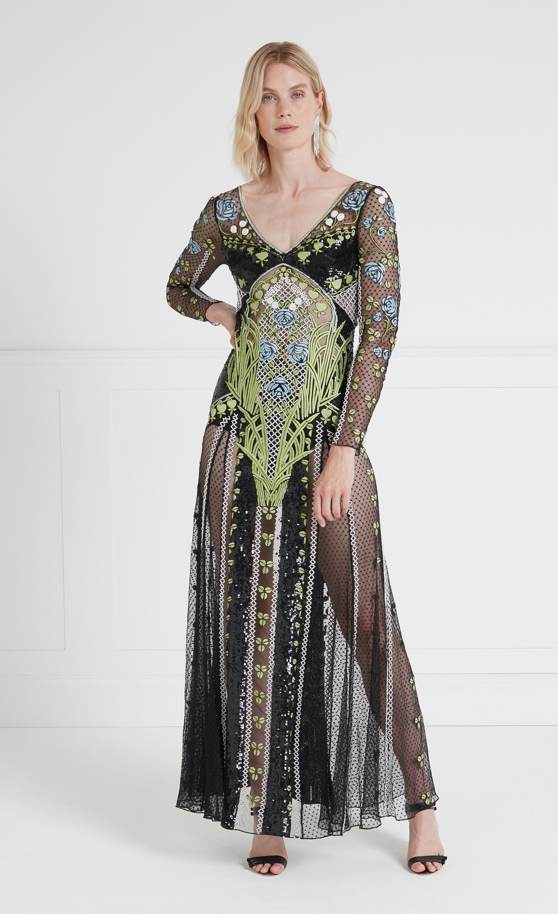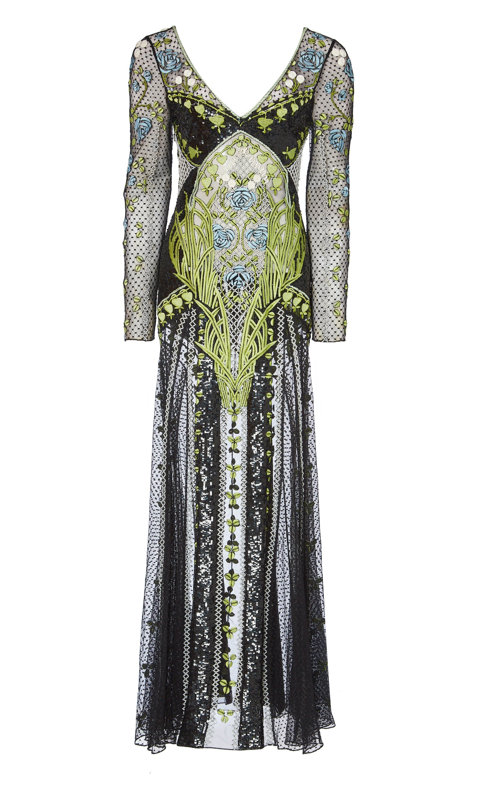 With embroidery designed exclusively in-house, considered for seamless composition and hand-beaded by?artisans on a tulle base ¡ª soft and breathable with a stunning drape, sourced locally where possible to reduce carbon footprint and crafted on lace warp knitting machines in Italy.?