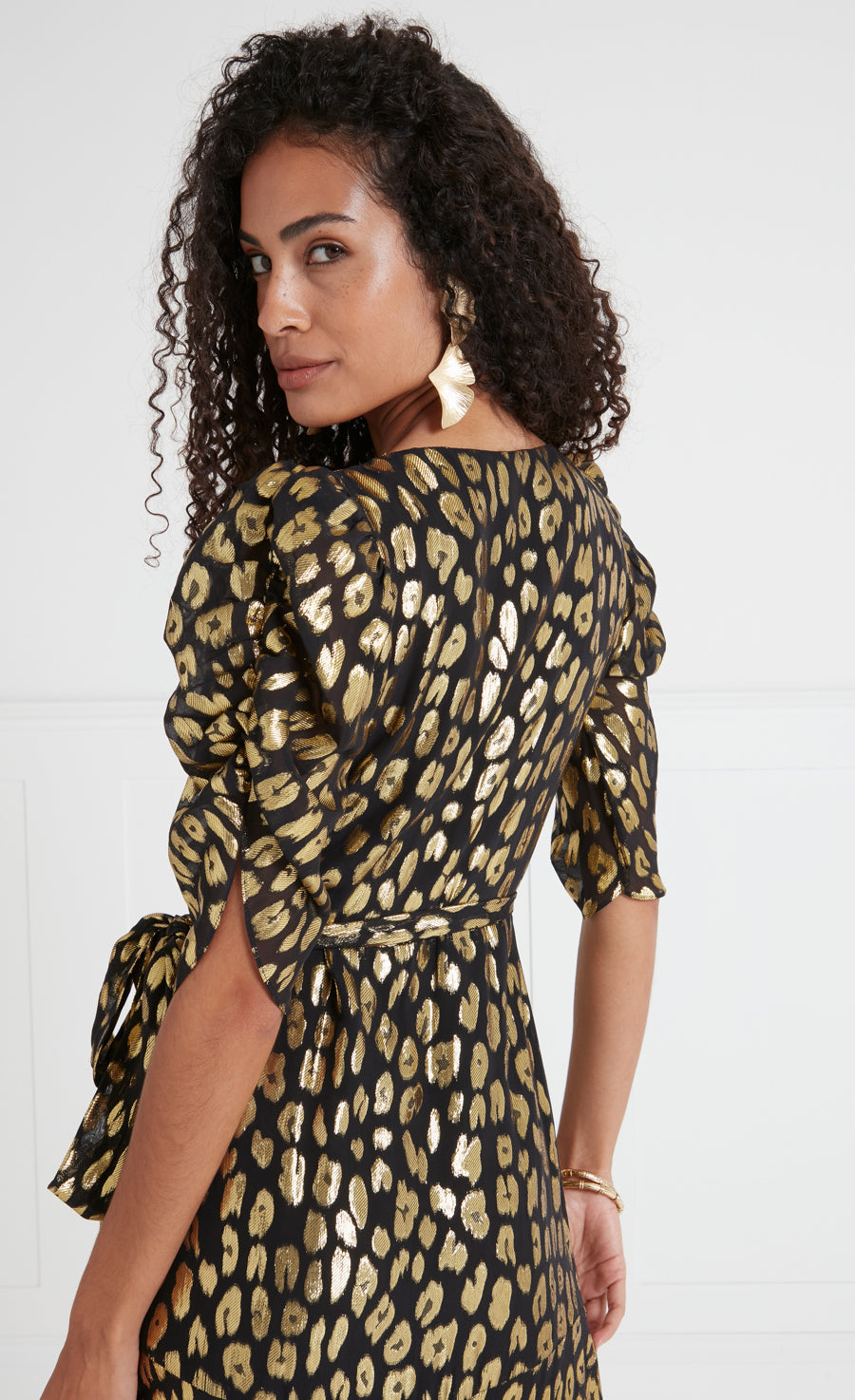 Signature Temperley, made from hypnotic lurex georgette, an exuberant approach to party dressing. A vision in lustrous leopard print jacquard, the three impactful styles in the Kyra story exude a free-spirited glamour, in keeping with the collection¡¯s mischievous mood. Ruffle details, playful puff proportions, slinky silhouettes: paying homage to late thirties eveningwear, modernised by the luxurious silk blend fil coup¨¦ in contemporary hues.