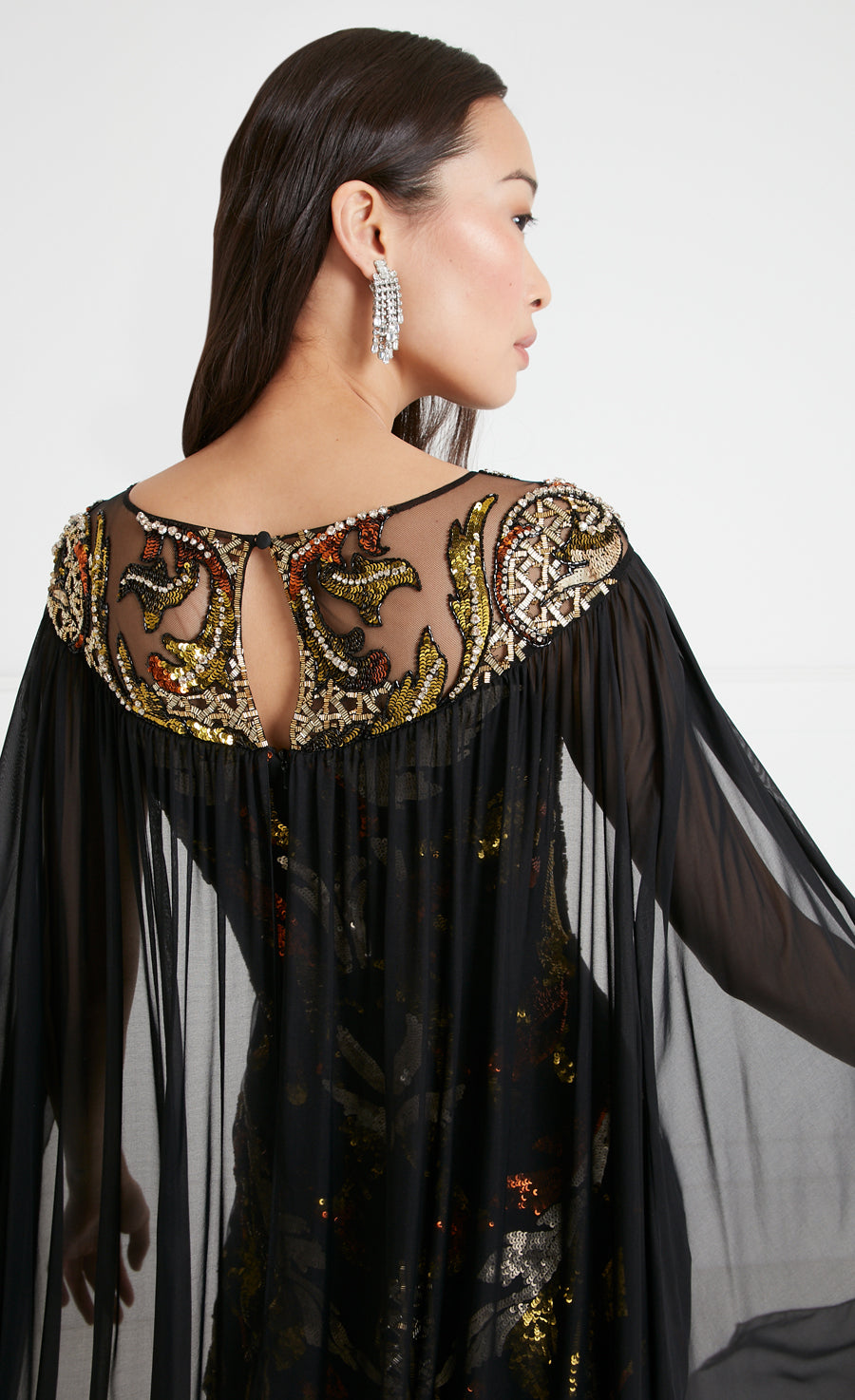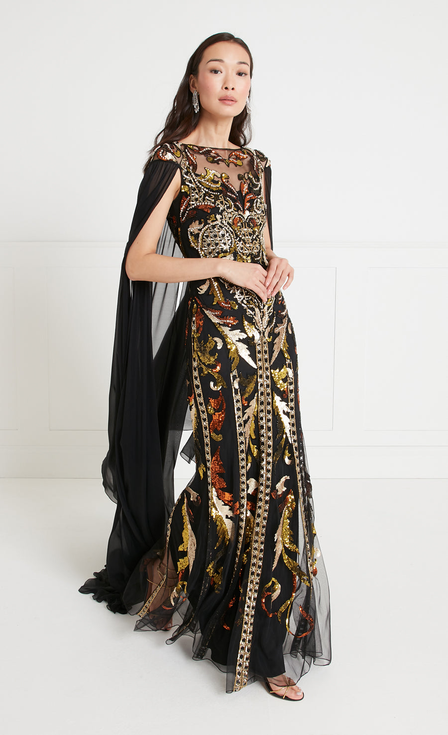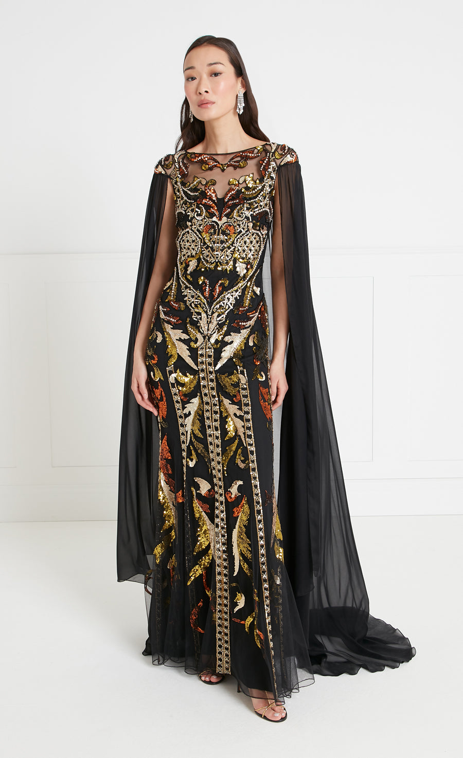 An instant statement-maker, the Novella embellished gown exemplifies Temperley¡¯s show-stopping glamour. Ethereal elegance, the striking silhouette, the instantaneously eye-catching cape, billowing from the shoulders, with decadent crystal lattice and filigree beadwork adding depth and definition at the waist, flowing to a tulle layered ankle hem.