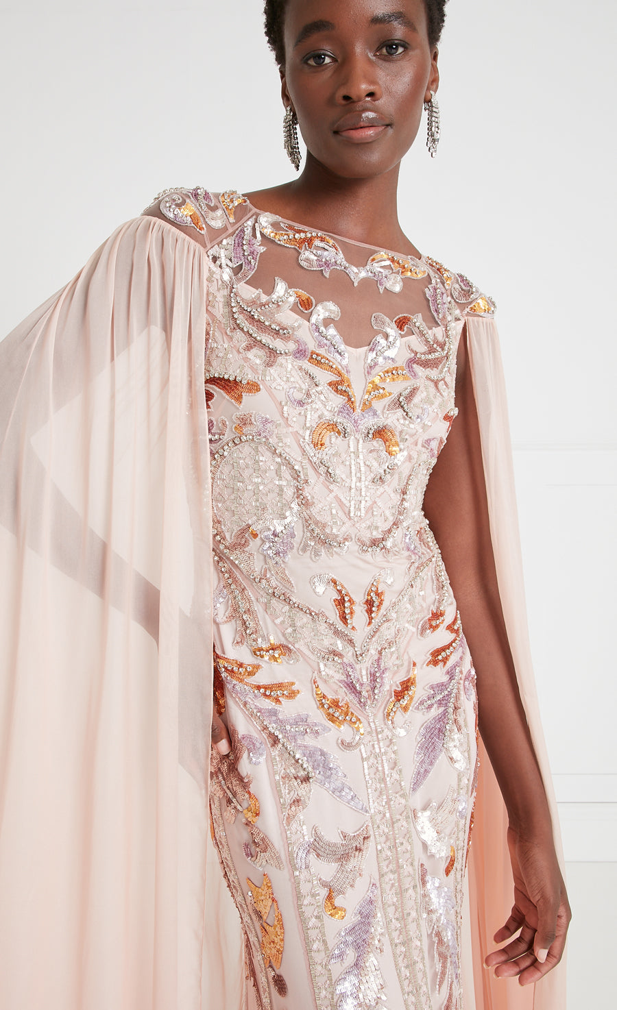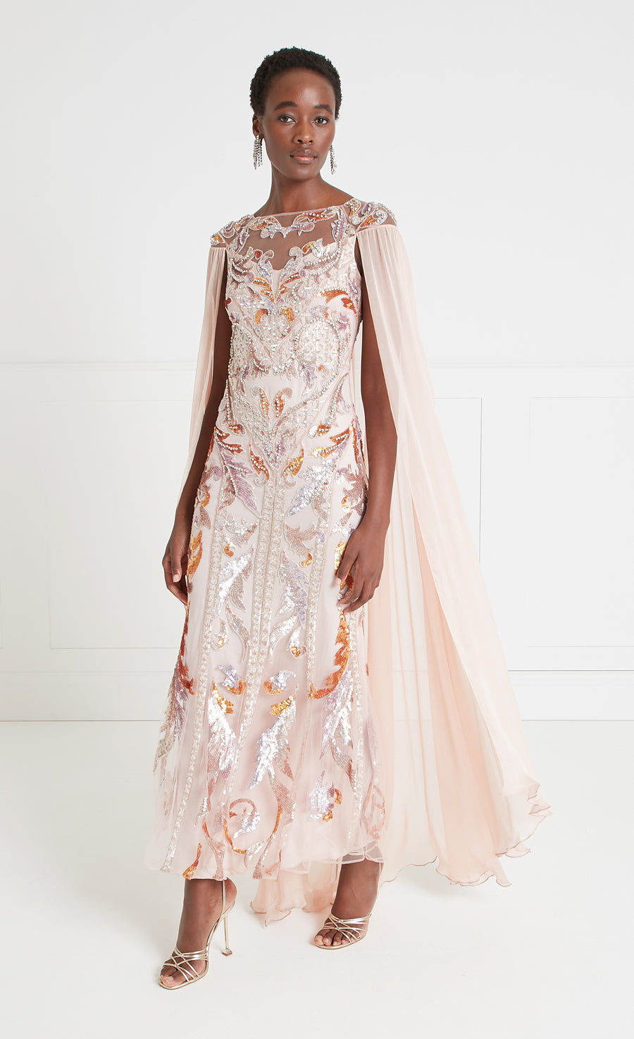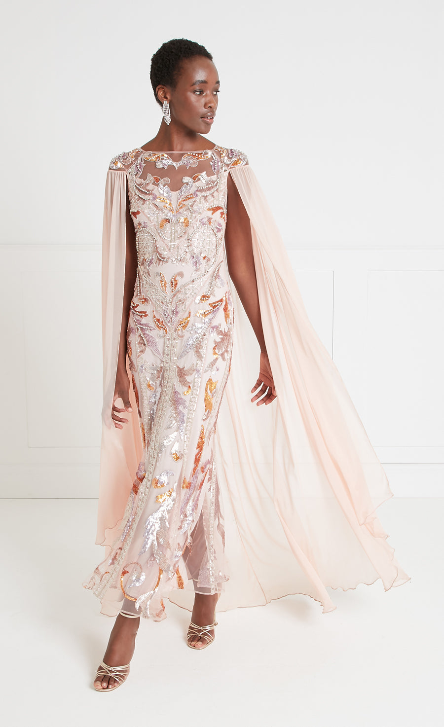 Novella Embellished Cape Gown - Rosewater