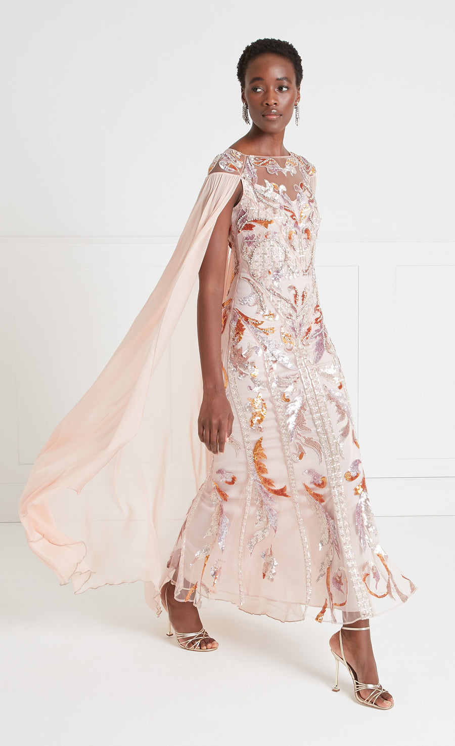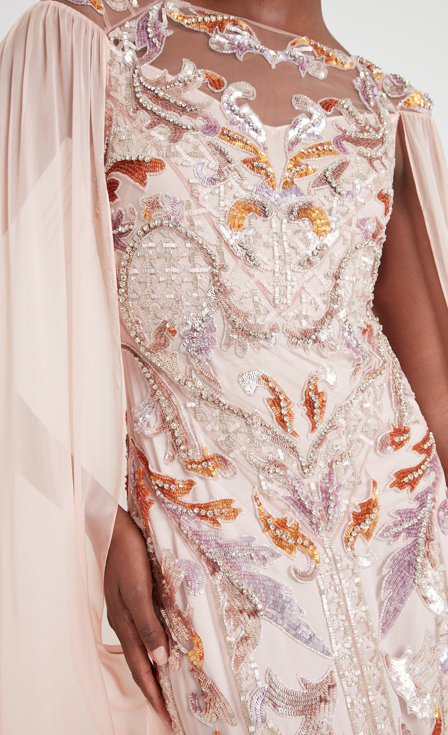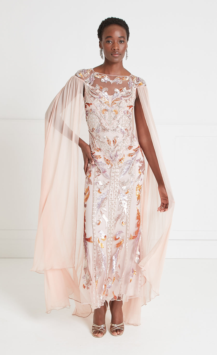 Novella Embellished Cape Gown - Rosewater